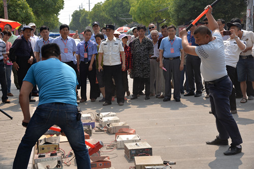 检查组一行首先来到2018年渔业法律法规宣传暨集中销毁电鱼工具活动现场,了解了我市近年来打击电鱼相关工作的开展情况,观摩了电鱼工具集中销毁现场。近年来,在市委市政府的正确领导下,在社会各界的大力支持下,市渔政部门坚决贯彻“以法治渔、以法兴渔”工作方针,通过持续开展打击电鱼专项行动,对电鱼等违法行为始终采取高压严打态势,使得电鱼等违法捕捞行为得到有效遏制,我市的渔业资源、渔业生态环境得到初步修复。活动现场,市渔政部门呼吁社会各界人士共同参与打击电鱼工作,共建绿色兴化、生态兴化。